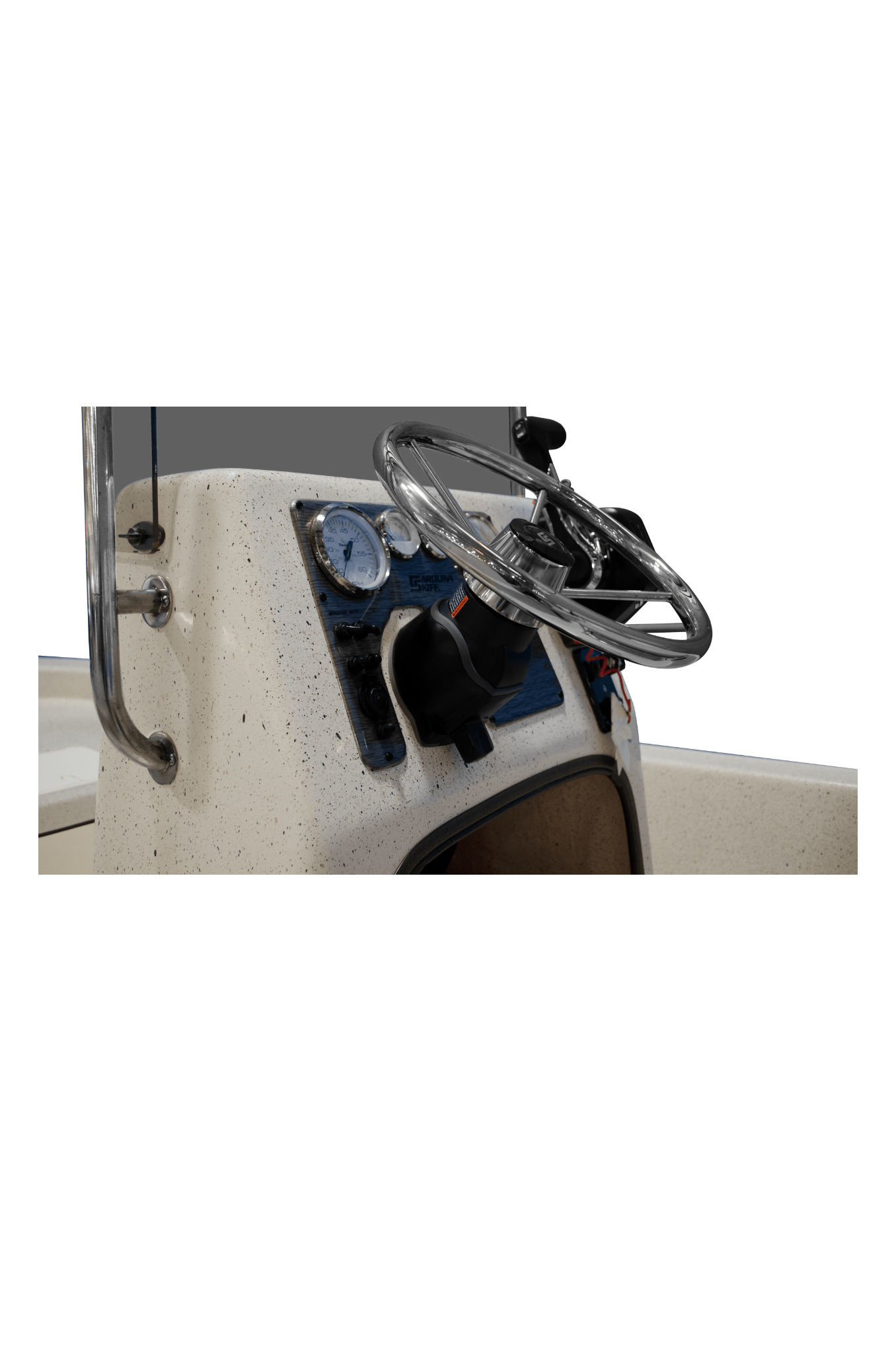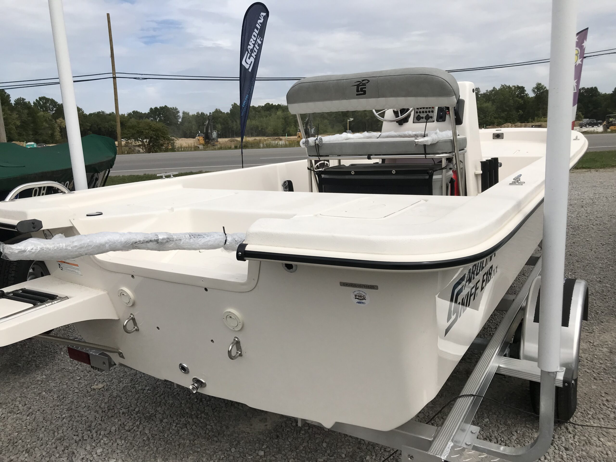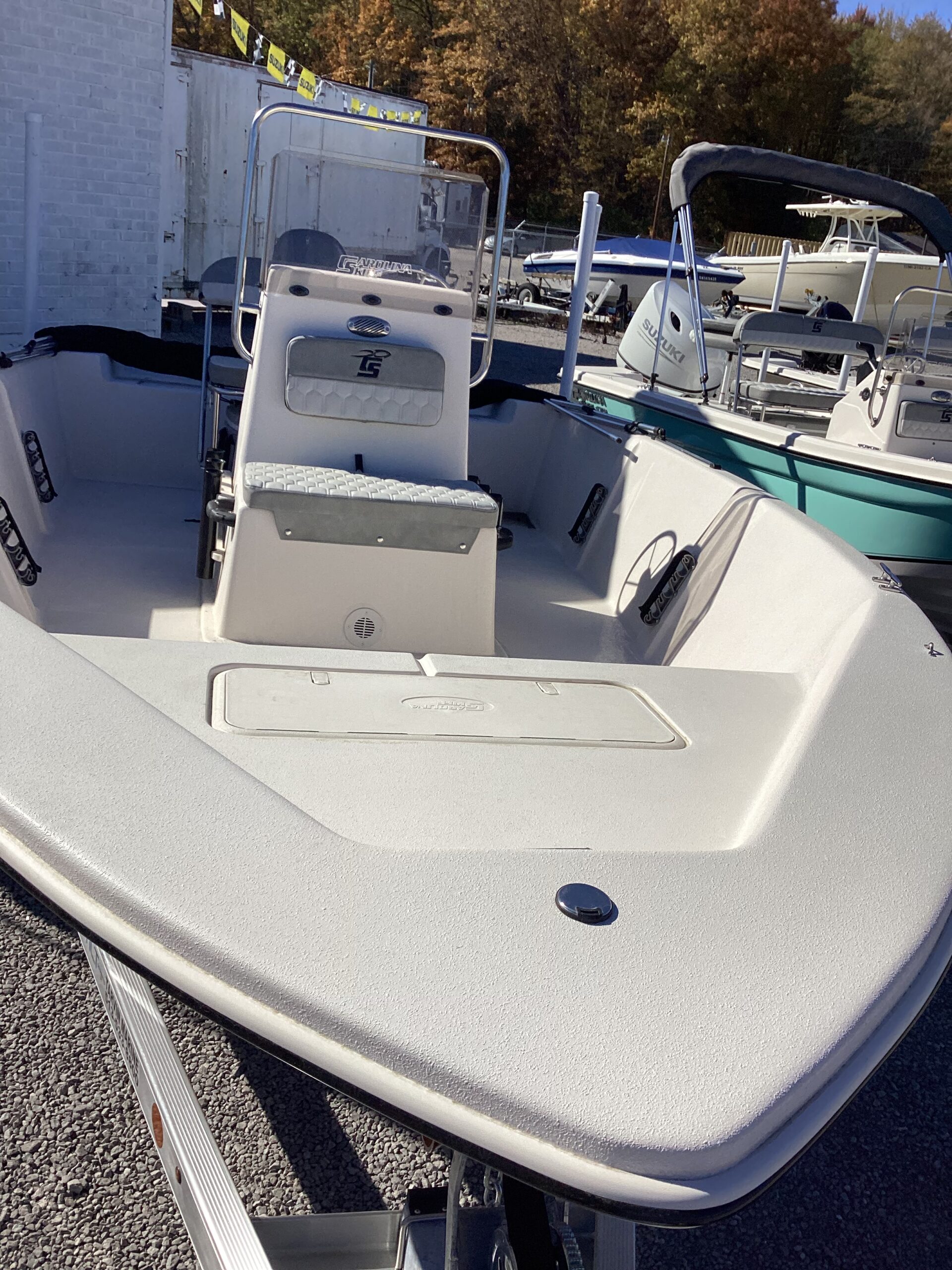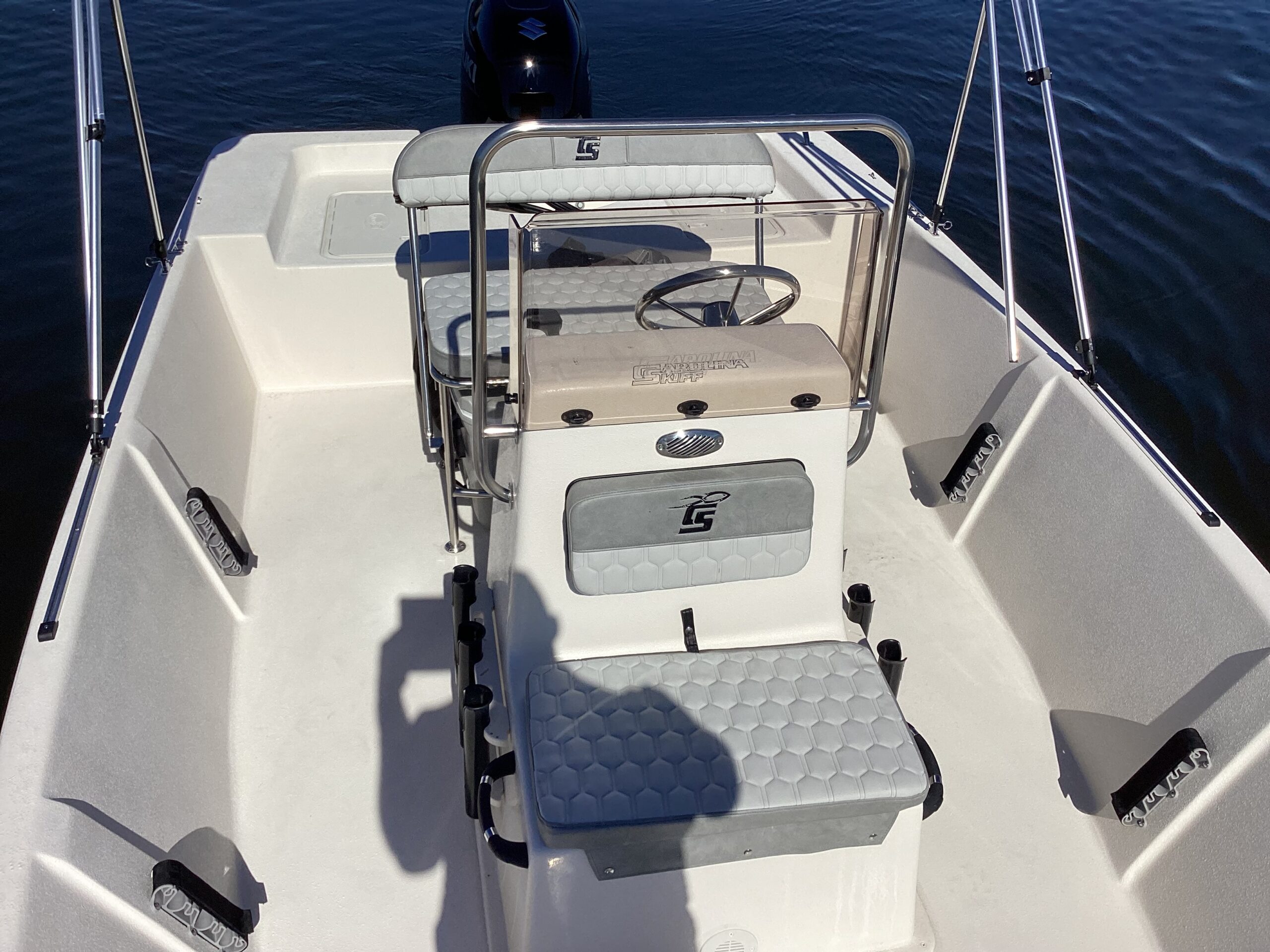 A boat that is truly ready for anything you can throw at it. Excellent speed and handling are what this boat is all about. A deep vee skiff by Carolina Skiff is river, Great Lakes and coastal waters ready. This boat is saltwater ready and includes an aluminum trailer. Featuring a tough fiberglass hull with closed cell foam and a composite transom. There is no wood on this boat, only composite marine board which is impervious to water and salt. You will not find any rot on this boat for it’s life.