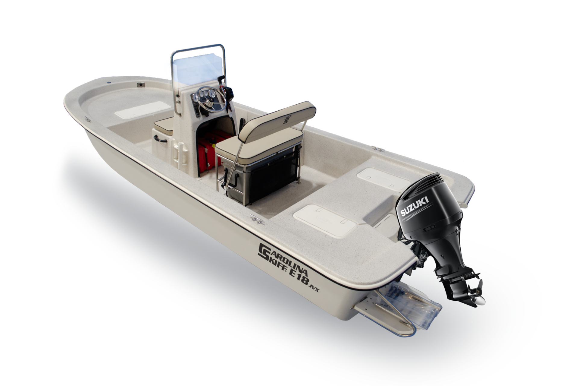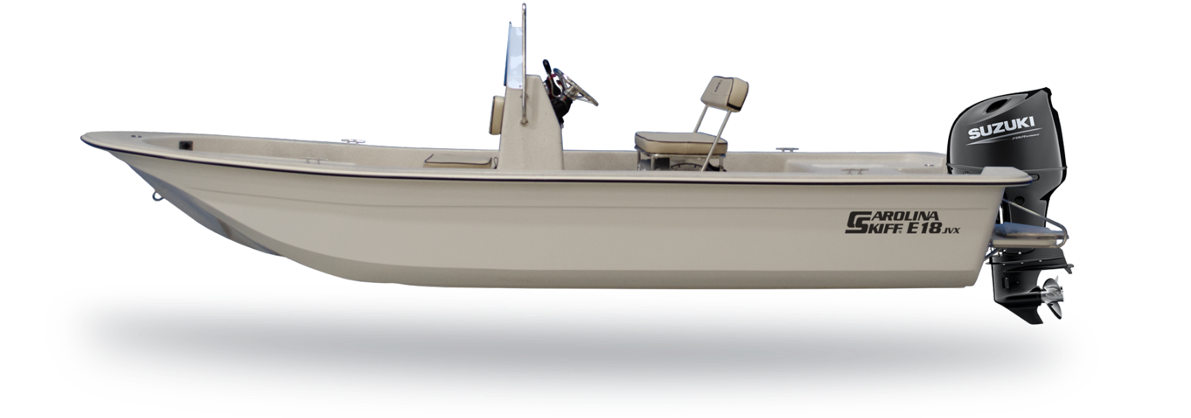 Experience the perfect blend of classic and modern design with the new E- Series JVX Center Console. Whether you’re an avid angler, a weekend explorer, or a family seeking quality time on the water, the E-series JVX caters to you with value. Cast your line with precision, fish in tidal creeks and coves, or simply bask in the sun-drenched splendor that only boating can provide. Boating possibilities are once again affordable. And if you’re seeking an alternative, consider the E18 JVX Tiller Handle. Either way, you’re not just getting a boat – you’re stepping into a Carolina Skiff lifestyle.