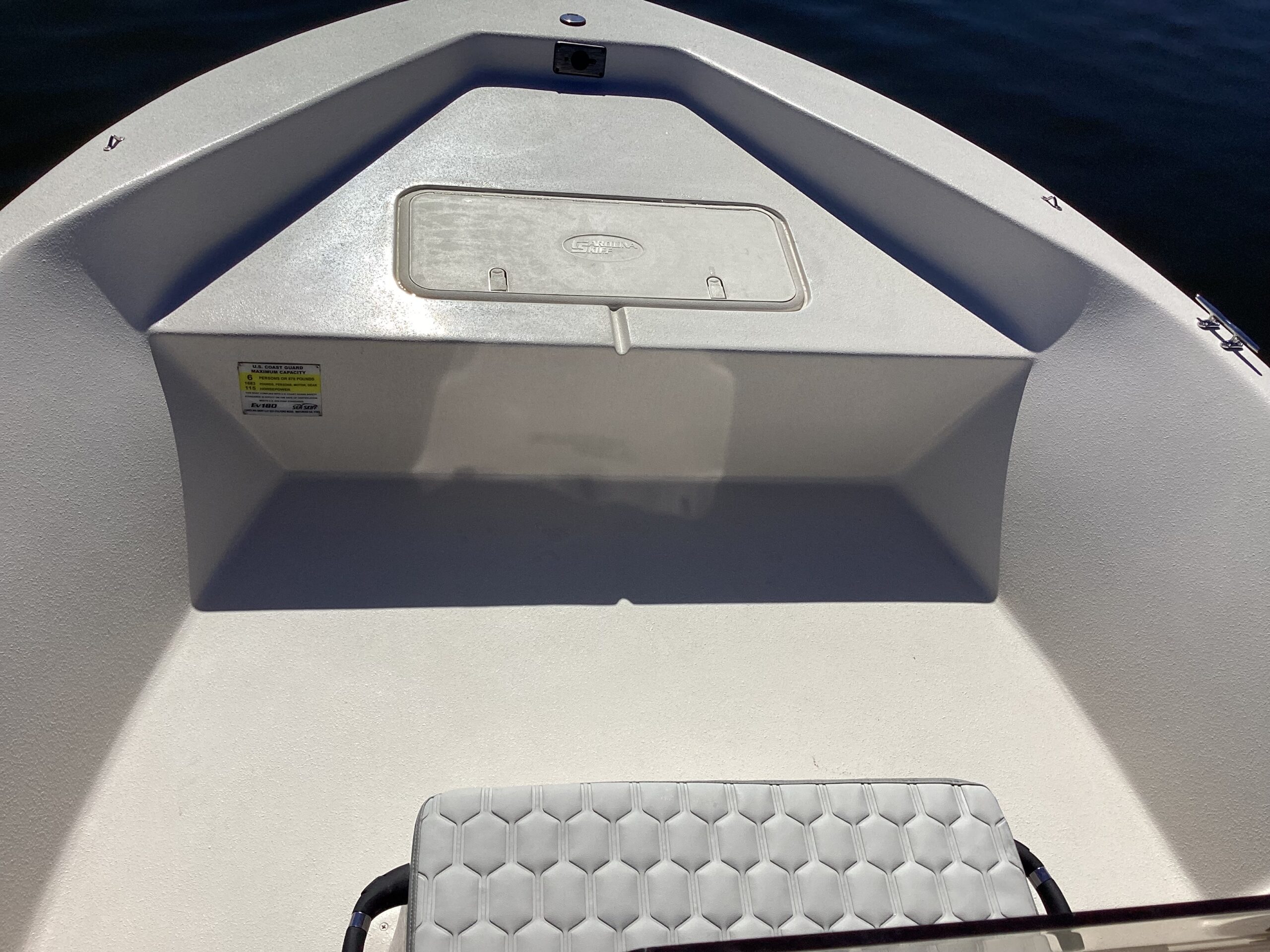 The Carolina Skiff EV180 Sea Skiff has a maximum person capacity of 6 and a maximum weight capacity (carry load) of 1683 lbs (763.4 kg). In essence, the EV180 Sea Skiff can comfortably accommodate up to six people and has a substantial carrying capacity for gear, equipment, and other items.
