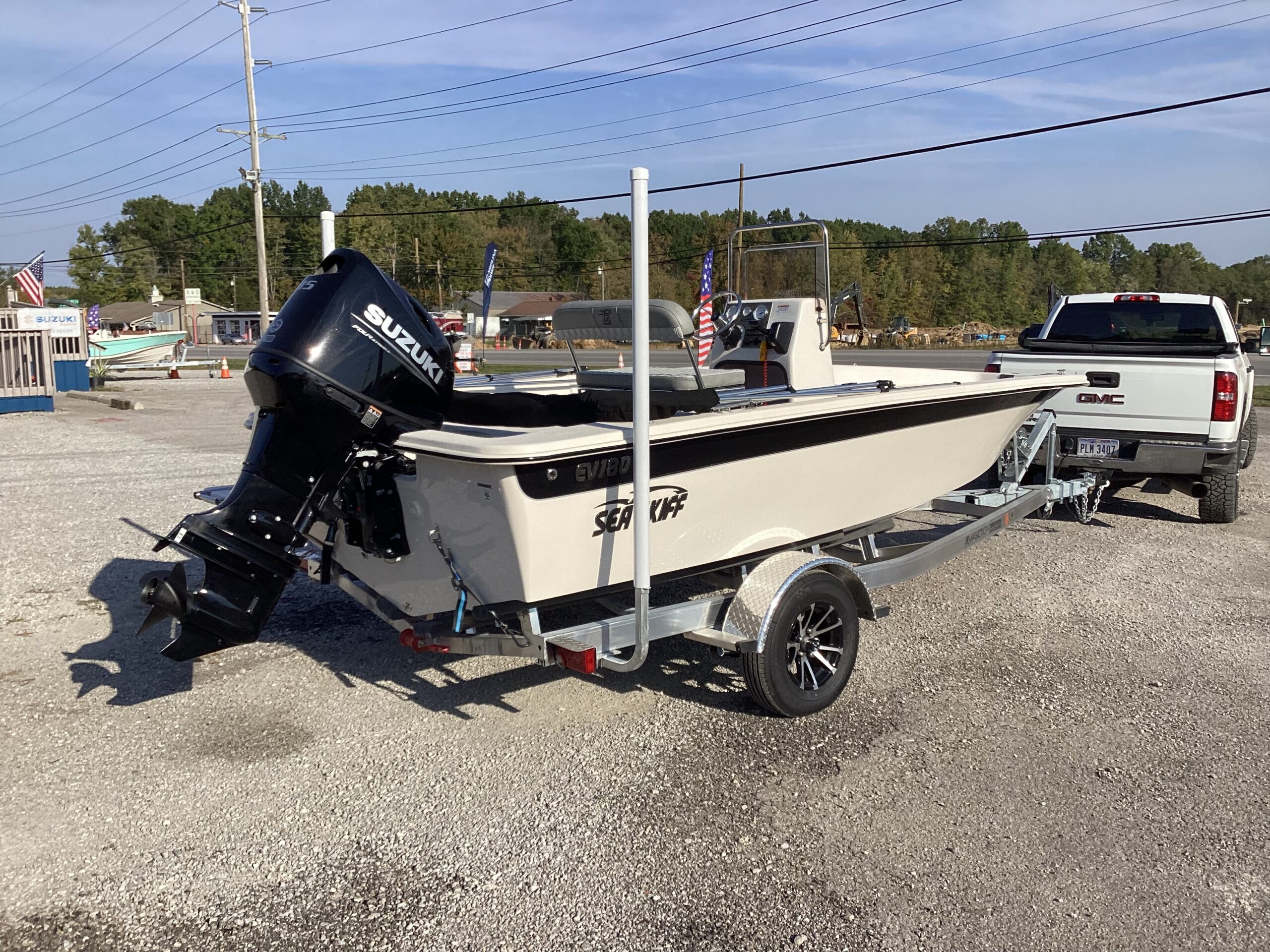 Suzuki and Honda outboards are the most reliable engines on the market. Either engine is an excellent choice to power your next skiff!
